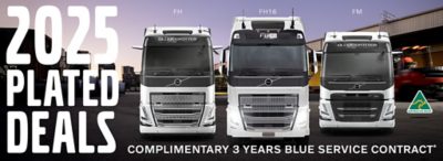 Experience premium performance, comfort, and reliability with our 2025 plated deal on Volvo FH16, FH, and FM models. Each truck comes with a complimentary Volvo Blue Service Contract*, providing 3 years of servicing to help support ongoing, reliable operation. For full details on the inclusions, see Terms and Conditions here.